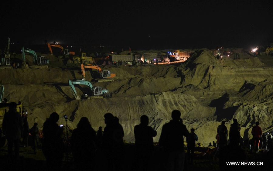 Excavators work at the rescue site in Zhongmengchang Village of Lixian County in Baoding, north China's Hebei Province, Nov. 8, 2016. A boy fell into a dried well in Baoding on Nov. 6. Eighty excavators have been dispatched for the rescue operation. (Xinhua/Wang Xiao)