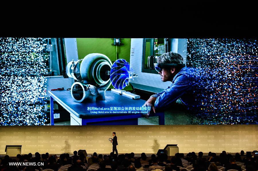 A representative of Microsoft introduces HoloLens technology during a release ceremony of world leading internet scientific and technological achievements at the 3rd World Internet Conference in Wuzhen, east China's Zhejiang Province, Nov. 16, 2016. (Xinhua/Xu Yu)