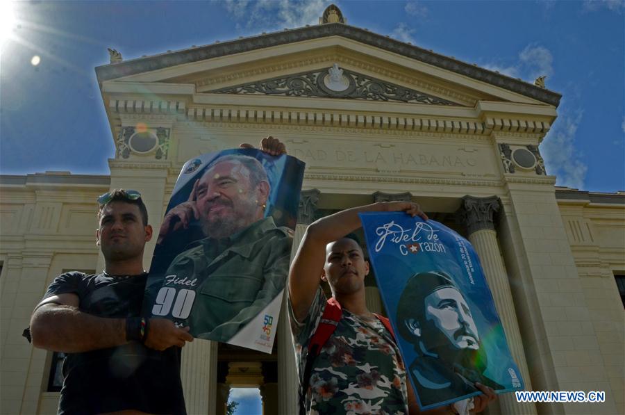 Students from the University of Havana gather outside their school to pay tribute to the leader of the Cuban Revolution, Fidel Castro, in Havana, Cuba, Nov. 26, 2016. Aged 90, Castro passed away late Friday night. (Xinhua/Joaquin Hernandez)