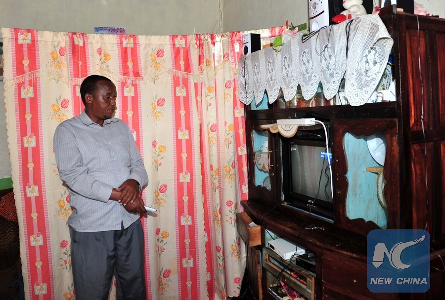 A local resident watches a program on satellite digital television provided by StarTimes in Kajiado County, Kenya, Nov. 30, 2016. Chinese media company StarTimes on Wednesday launched a satellite digital television project in Kenya as part of its long-term agenda to bridge rural-urban information gap in the East African nation. (Xinhua/Li Baishun)