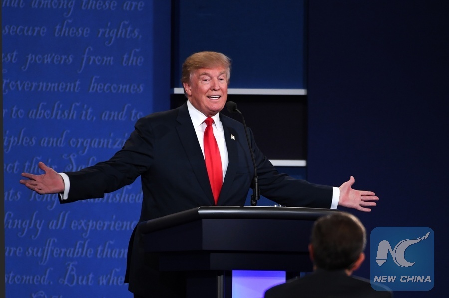 File photo taken on Oct. 19, 2016 shows Donald Trump participating in the third and final presidential debate at the University of Nevada Las Vegas (UNLV) in Las Vegas, Nevada, the United States. (Xinhua/Yin Bogu)