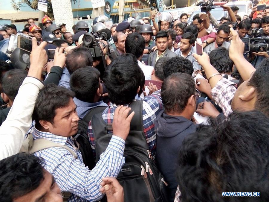 DHAKA, Dec. 24 (Xinhua) -- Two suspected militants, a female and boy, were killed in separate suicide blasts during a raid on a hideout of banned Islamist outfit Jamaatul Mujahideen Bangladesh(JMB) in capital Dhaka on Saturday.