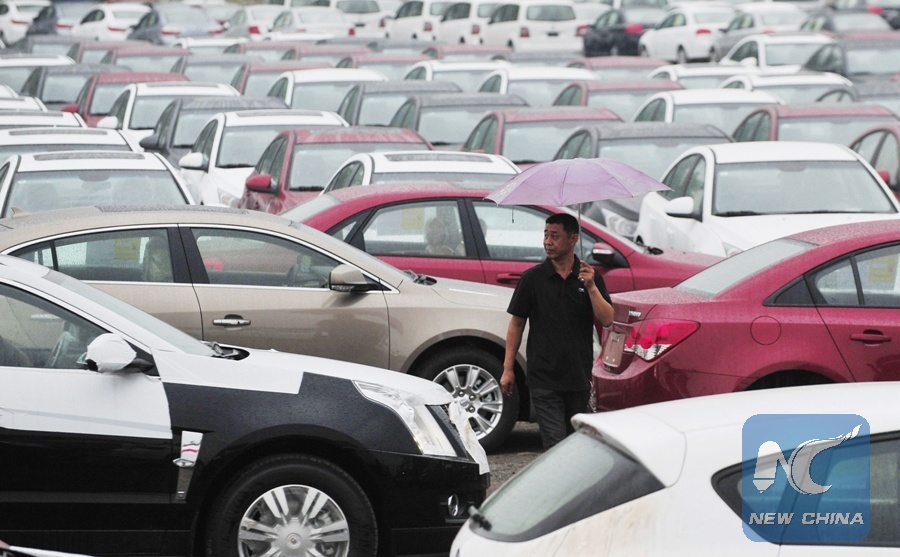 An employee walks past new cars at a General Motors parking lot in Shenyang, Liaoning province August 1, 2012. (Xinhua/Reuters)