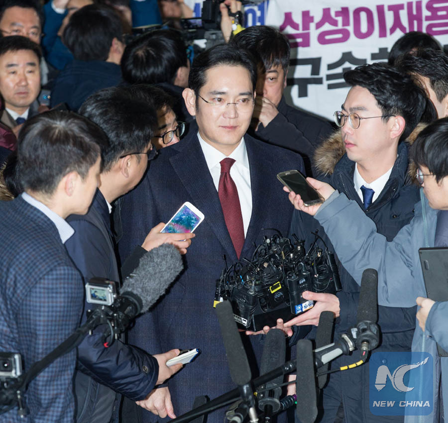 SEOUL, Jan. 12 (Xinhua) -- The heir apparent of Samsung Group,South Korea's largest conglomerate, appeared in the office of an independent counsel team investigating a scandal involving impeached President Park Geun-hye for his alleged involvement in bribery charges.