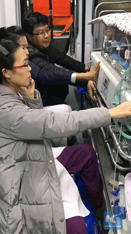 CHANGCHUN, Jan. 12 (Xinhua) -- A newborn baby who stopped breathing after birth was saved after timely transfer to a better hospital in northeast China thanks to police escort and help from others during a 350-km journey between two cities.