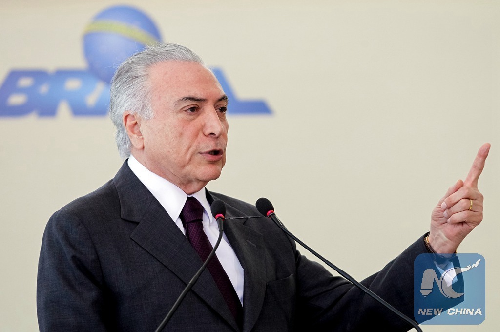 BRASILIA, Jan. 11 (Xinhua) -- Brazilian President Michel Temer stated Wednesday that criminal gans seemed to have "rights outside the State" which concerned the entire country.