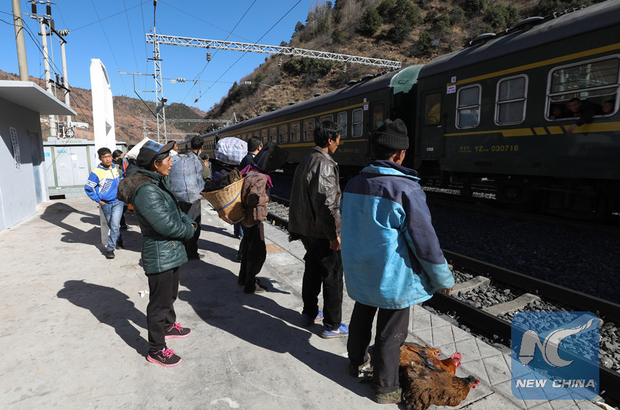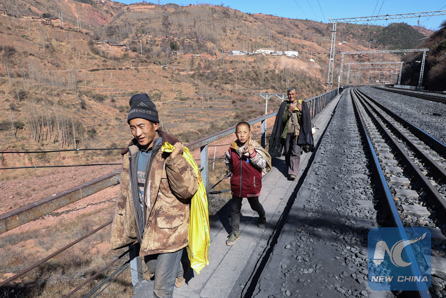Passengers of ethnic Yi group walk to the train station on Jan. 16, 2016. (Xinhua/Jiang Jinghong)