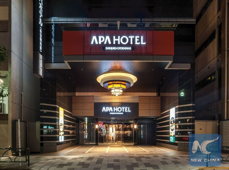 File photo shows the entrance of an APA Hotel in Japan.