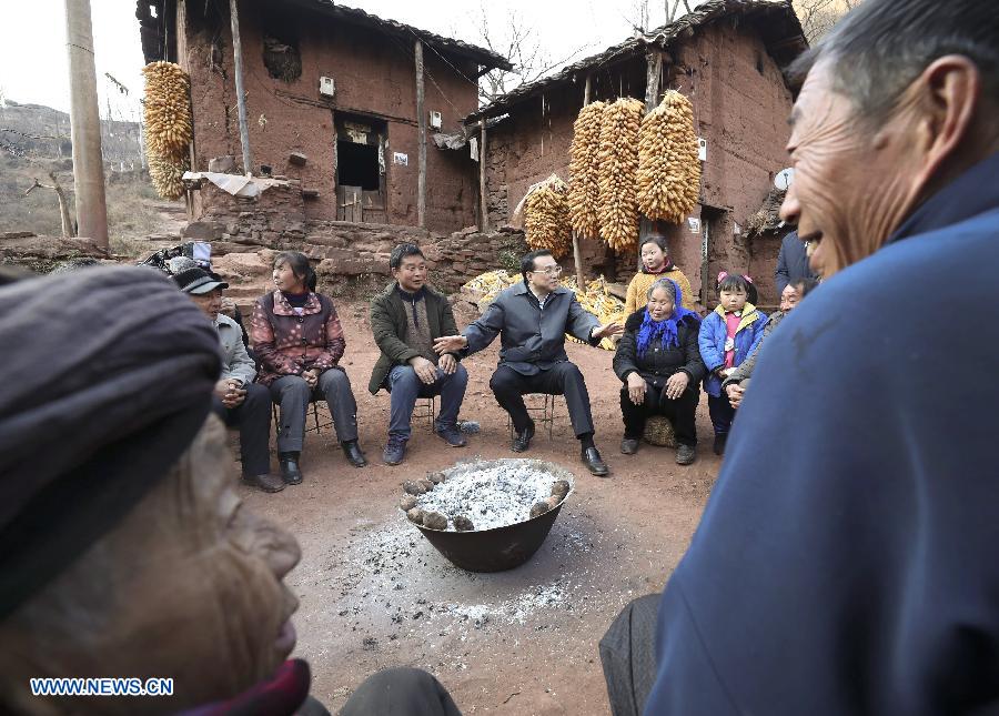 Chinese Premier Li Keqiang visits villagers of Lianhe Village in Zhaoyang District of Zhaotong City, southwest China's Yunnan Province, Jan. 23, 2017. Li made an inspection tour to southwest China's Yunnan Province from Monday to Wednesday. (Xinhua/Pang Xinglei)