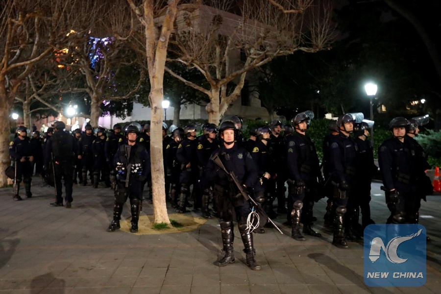 SAN FRANCISCO, Feb. 2 (Xinhua) -- Chancellor Nicholas Dirks of the University of California, Berkeley, tried Thursday to distance the public university from violence during a protest the previous evening that turned a radical far-right political figure away from making a speech on campus.