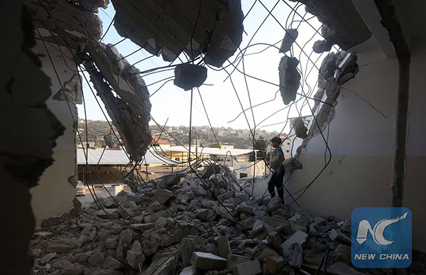A boys stands on July 18, 2016 amidst the rubble the house belonging to a Palestinian man accused by Israeli authorities in taking part in an attack in Jerusalem in which an Israeli policewoman was killed, after it was demolished overnight by the army in the village of Qabatiayh, in the occupied West Bank. (Xinhua/AFP Photo)
