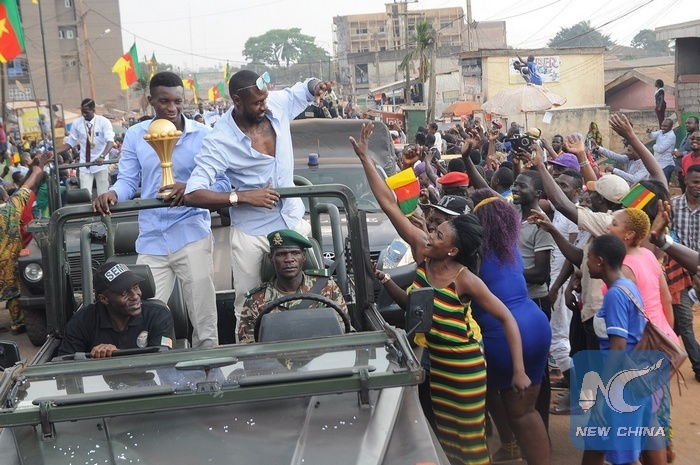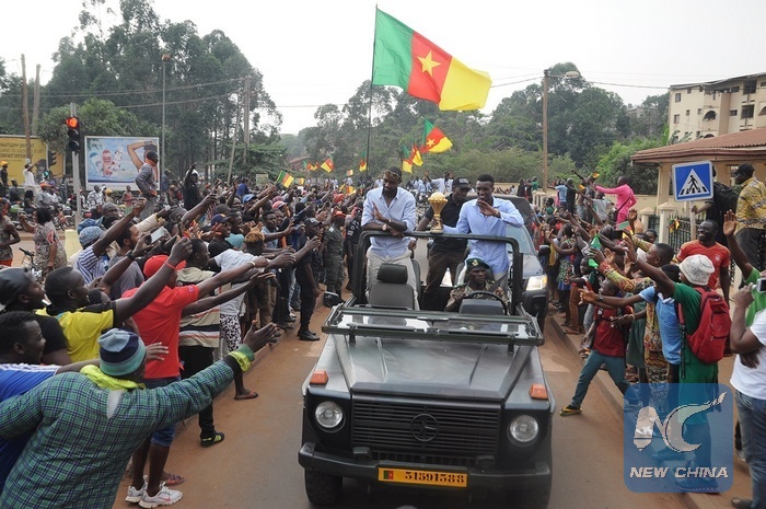 YAOUNDE, Feb. 9 (Xinhua) -- Cameroon's National Football Team were given a heroes' welcome on return to their homeland after winning the champion of the 2017 African Cup held in Libreville, capital of Gabon.