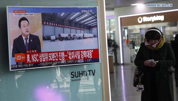 News program about test-fire of a ballistic missile of the Democratic People's Republic of Korea (DPRK) is seen on TV at the Seoul Railway Station in Seoul, South Korea, Feb. 12, 2017. The DPRK fired what is believed to be a ballistic missile into its eastern waters early Sunday, South Korea's Joint Chiefs of Staff said. (Xinhua/Yao Qilin)