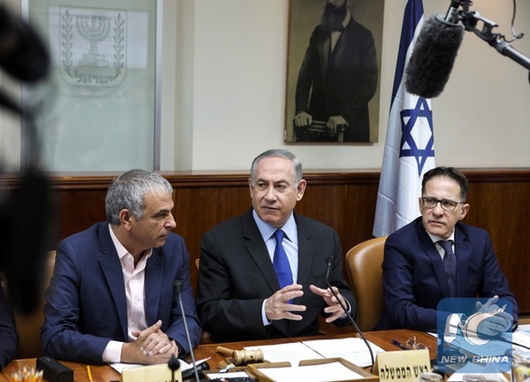 Israeli Prime Minister Benjamin Netanyahu chairs the weekly cabinet meeting in Jerusalem on February 19, 2017. (Xinhua/AFP Photo)