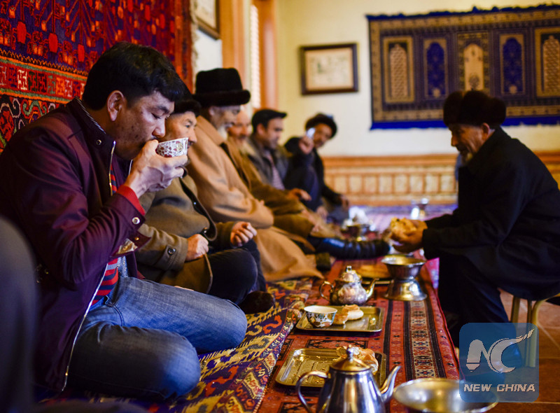 People in Kashgar has been drinking tea since more than a thousand years ago, thanks to the city's important position on the ancient Silk Road, through which merchants traded tea and other goods between China, Middle East and Europe.