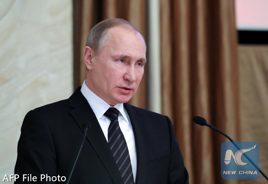 Russian President Vladimir Putin speaks during a meeting of the Federal Security Service's board in Moscow on February 16, 2017.(AFP PHOTO)