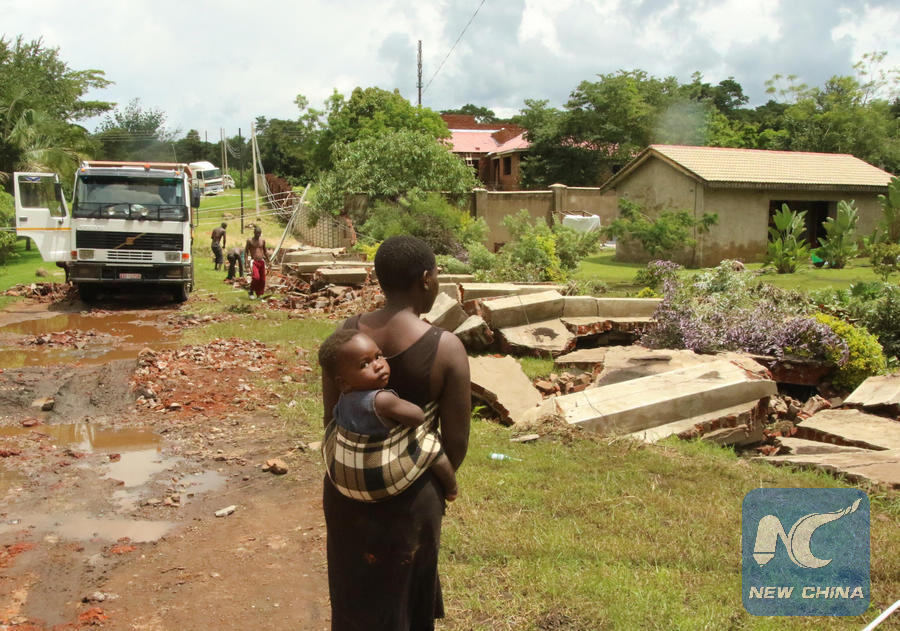 Photo taken on Jan. 26, 2017 shows the damage caused by heavy rain in the community at the surburb of Harare, Zimbabwe. (Xinhua)