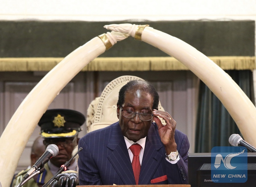 File photo shows Zimbabwean President Robert Mugabe speak during the State of the Nation Address in Harare, capital of Zimbabwe, Dec. 6, 2016. (Xinhua)