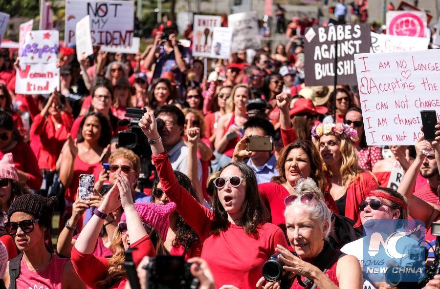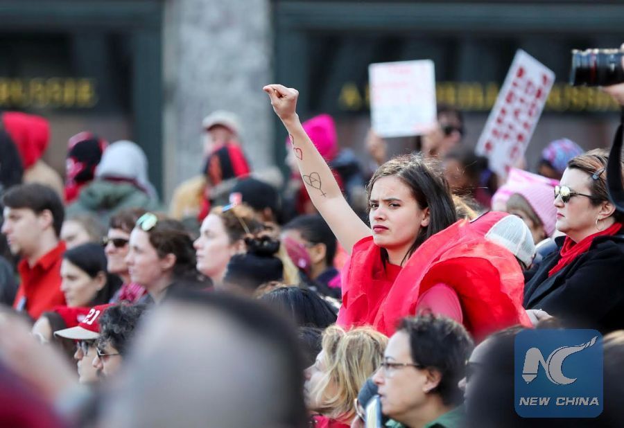 "I am concerned about women's heath care, protections of women from discrimination, sex abuse and violence, these are the fundamental things I would like to see our society improve on," Claire Mccue told Xinhua at the rally.