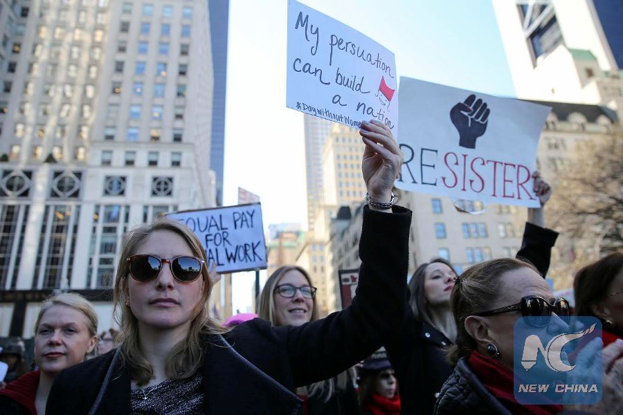 NEW YORK, March 8 (Xinhua) -- Thousands of New Yorkers staged strikes, rallies and marches on Wednesday to mark the International Women's Day with an aim to spotlight worsening gender inequality in U.S.