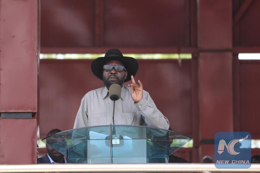 South Sudanese President Salva Kiir gives his address during the National Day of Prayers on March 10, 2017. Thousands of South Sudanese turned up for the national prayer at the John Garang Mausoleum in the capital, Juba to pray for peace, repentance and forgiveness. (Xinhua/Gale Julius)