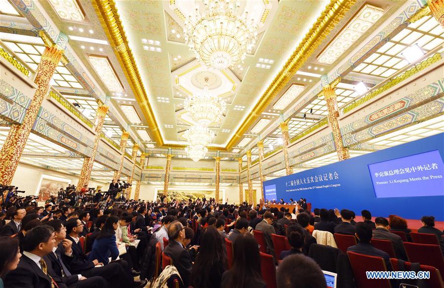 Chinese Premier Li Keqiang gives a press conference at the Great Hall of the People in Beijing, capital of China, March 15, 2017. (Xinhua/Yang Zongyou)