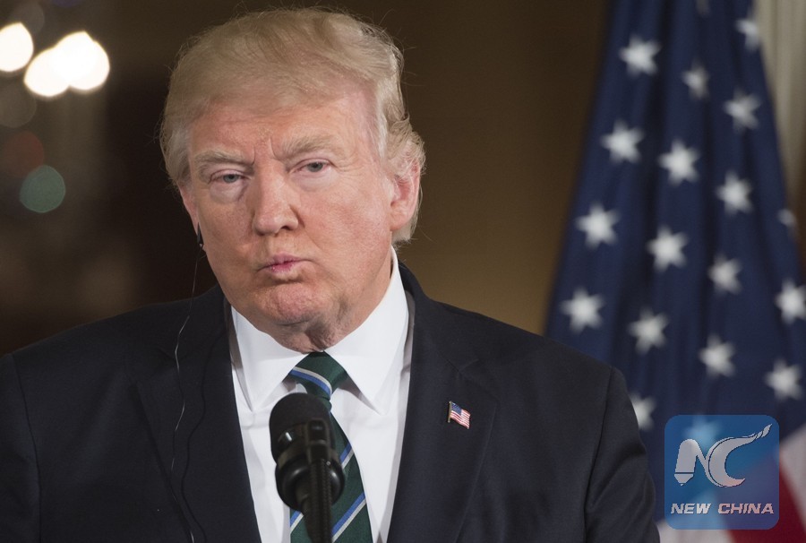 U.S. President Donald Trump holds a joint press conference with German Chancellor Angela Merkel in the East Room of the White House in Washington, DC, March 17, 2017. (Xinhua/ AFP PHOTO)
