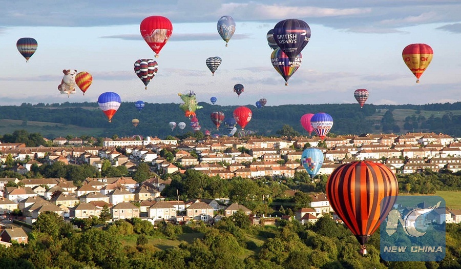 Hot air balloons take off from the bank of the Awon River during the Hot Air Balloon Festival held in Bristol, 200 kilometers west of Britain's capital London, August 12, 2005. (Xinhua Photo/Ma Jianguo)