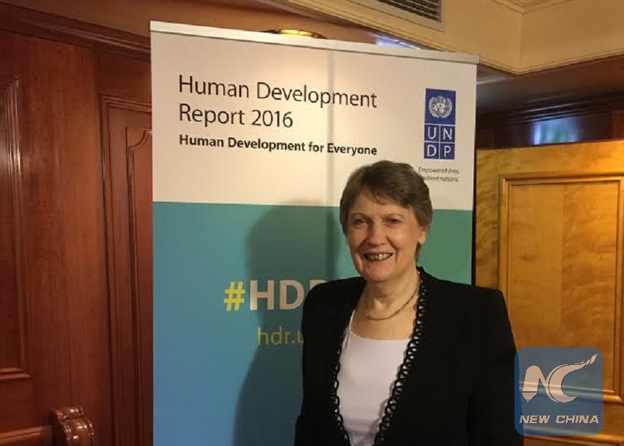 STOCKHOLM, March 23 (Xinhua) -- China has made a huge contribution to human development, said United Nations Development Program (UNDP) Administrator Helen Clark on Tuesday when the agency released its Human Development Report 2016 in Stockholm.