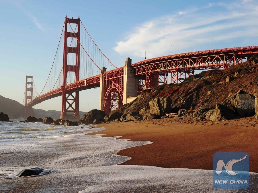 Photo taken on June 11, 2013 shows the famous scenic spot Golden Gate Bridge in San Francisco, the United States. (Xinhua/Li Jian)