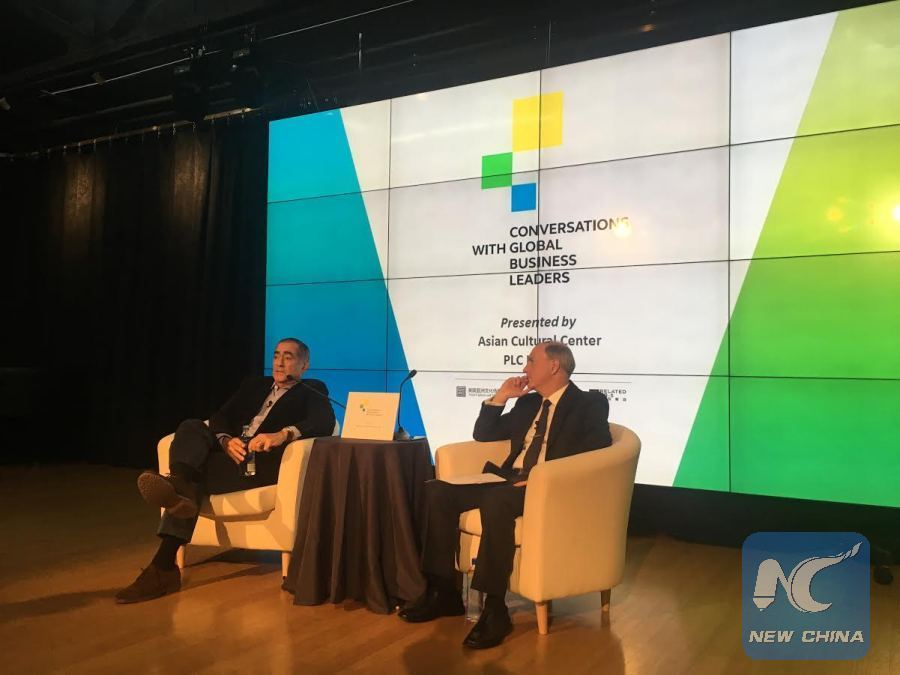 Former Chairman and CEO of Morgan Stanley John J. Mack speaks at "Conversations with Global Business Leaders" event in New York on March 23, 2017. (Xinhua/Li Ming)