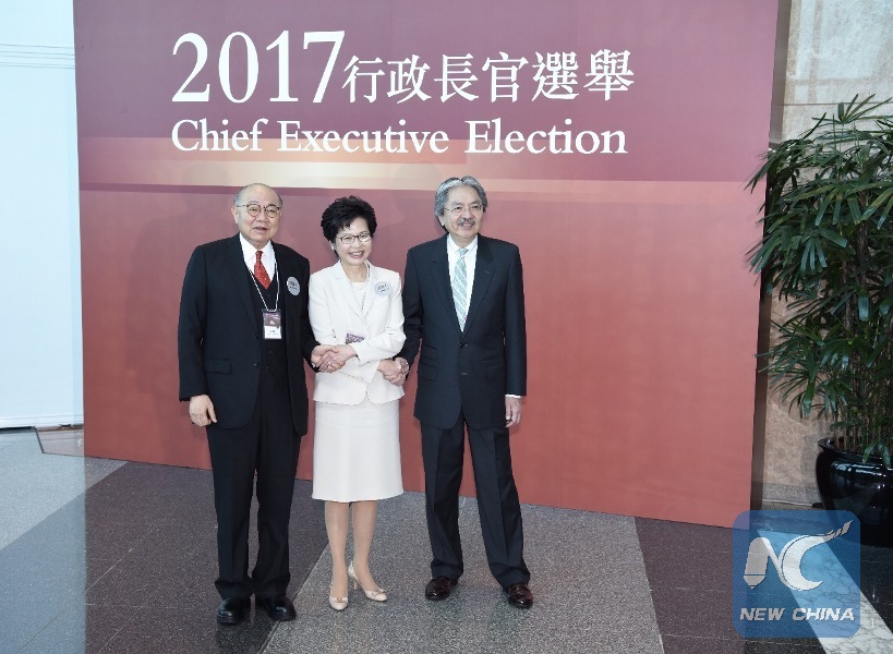 Photo taken on March 26, 2017 shows the voting for the fifth-term chief executive of China's Hong Kong Special Administrative Region (SAR) starts, with three candidates running for the position. (Xinhua/Wang Xi)