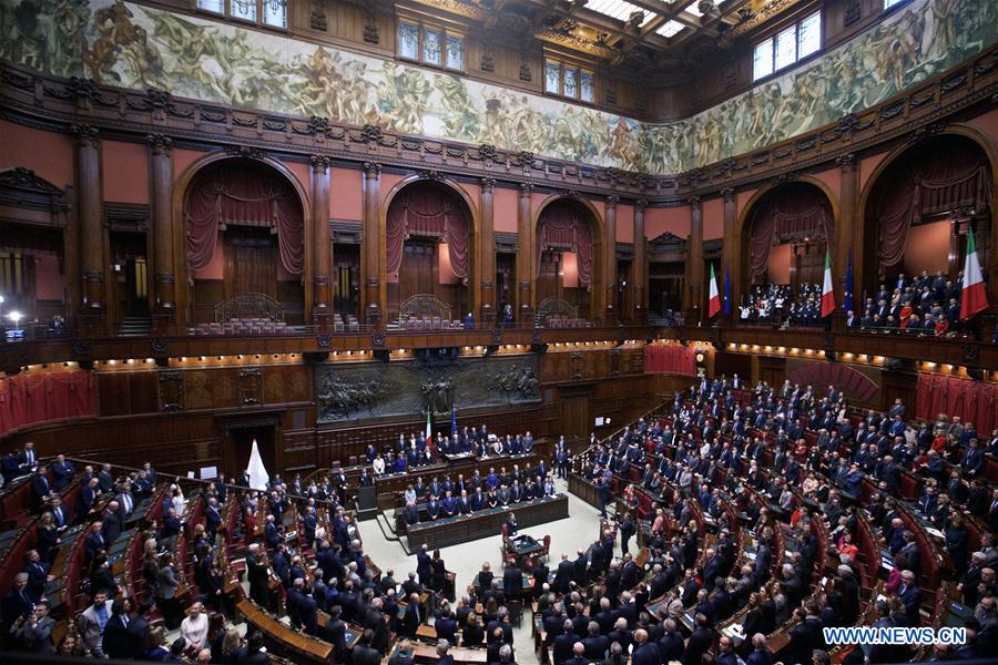 Photo taken on March 22, 2017 shows the the ceremony to celebrate the forthcoming 60th anniversary of the Treaty of Rome in the Italian Chamber of Deputies in Rome, Italy. Italian lawmakers gathered in the Chamber of Deputies on Wednesday to celebrate the forthcoming 60th anniversary of the Treaty of Rome, which triggered the whole integration process in 1957. (Xinhua/Jin Yu)