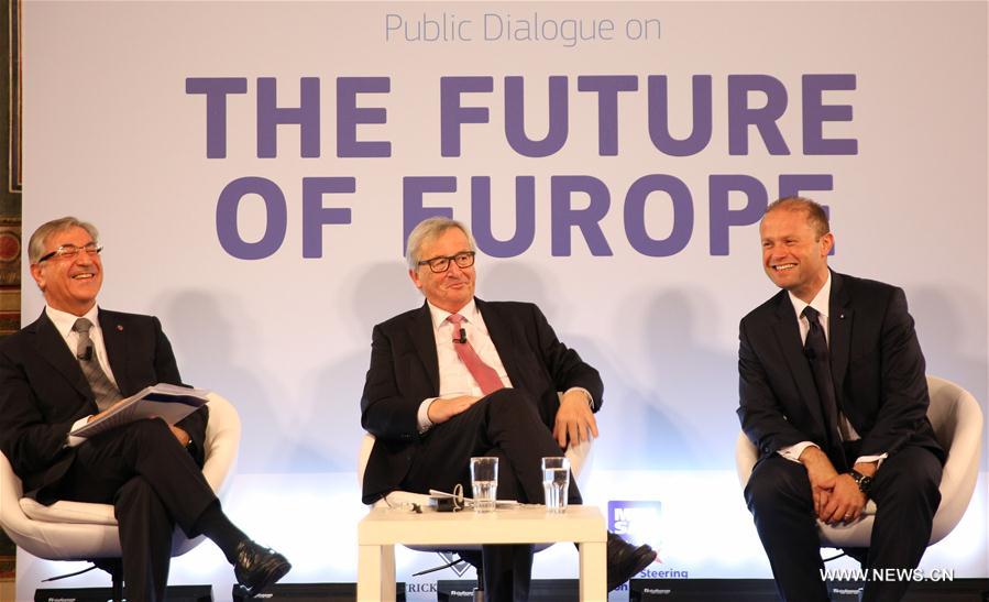 VALLETTA, March 29 (Xinhua) -- Maltese Prime Minister Joseph Muscat and European Commission President Jean-Claude Juncker shared their views on Brexit in a public dialogue on the future of Europe held in Valletta on Wednesday.