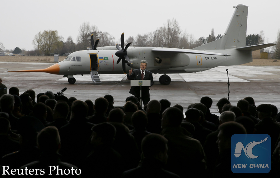KIEV, March 31 (Xinhua) -- Ukraine-produced An-132 light transport plane has taken to the skies for the first time on Friday, Ukrainian state-run aircraft producer Antonov said in a statement.