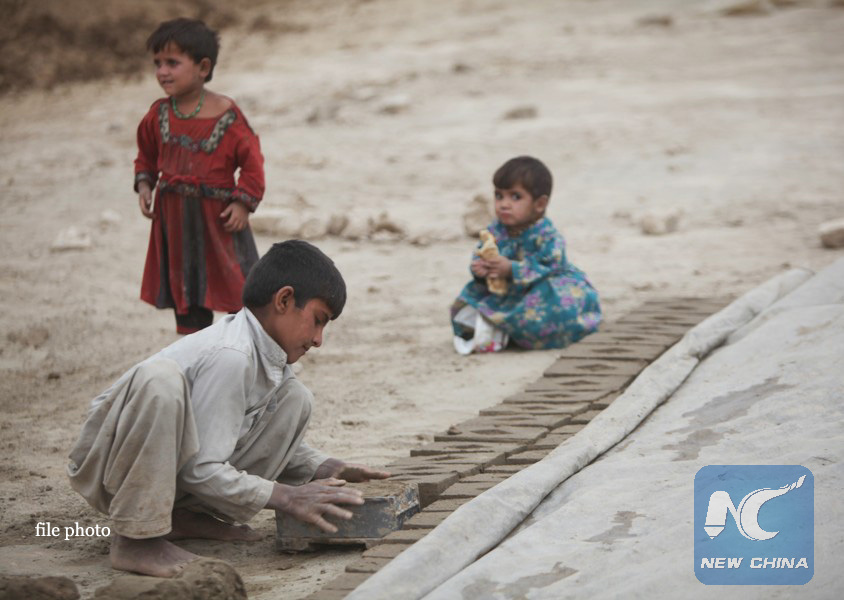 Kids work at a brick factory in Kabul, Afghanistan on Sept. 24, 2014. (Xinhua/Ahmad Massoud)