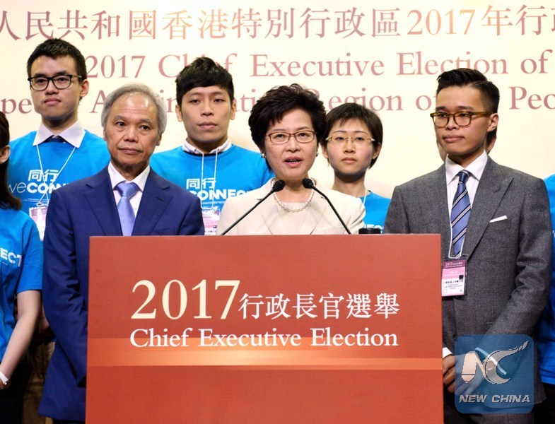 Lam won the chief executive election with 777 of 1,163 valid votes on March 26 and she will assume office on July 1, 2017.