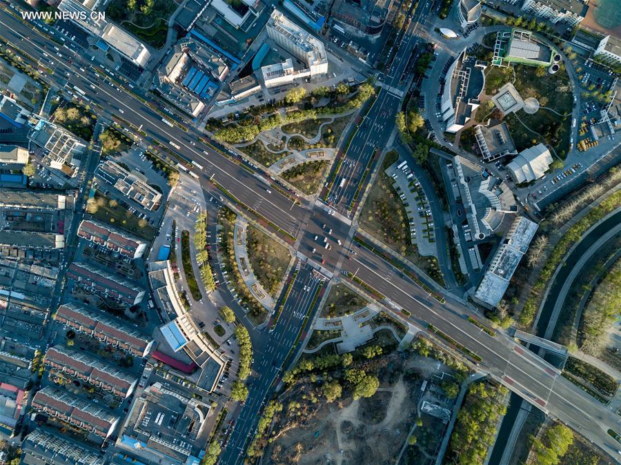 Aerial photo taken on April 11, 2017 shows the Beidajie Roundabout in the Huairou District of Beijing, capital of China. (Xinhua/Yin Gang)