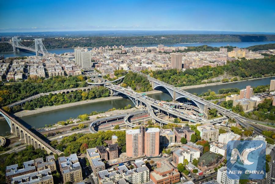 The aerial photo shows the Alexander Hamilton Bridge over the Harlem River in New York City, which recently underwent a full renovation. China Construction America Inc (CCA) is the company in charge of the renovation. (Xinhua/Courtesy of CCA)