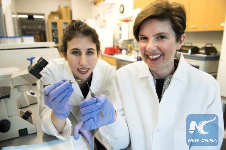 A team of biomedical engineering researchers has created a revolutionary 3D-bioprinted patch that can help heal scarred heart tissue after a heart attack. Two of the researchers involved are biomedical engineering Associate Professor Brenda Ogle (right) and Ph.D. student Molly Kupfer (left). (Xinhua/Credit: Patrick O'Leary, University of Minnesota)
