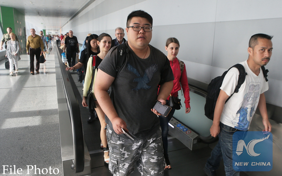 Chinese travellers arrive at the Boryspil airport in Kiev, Ukraine, on June 20, 2016. (XINHUA PHOTO)
