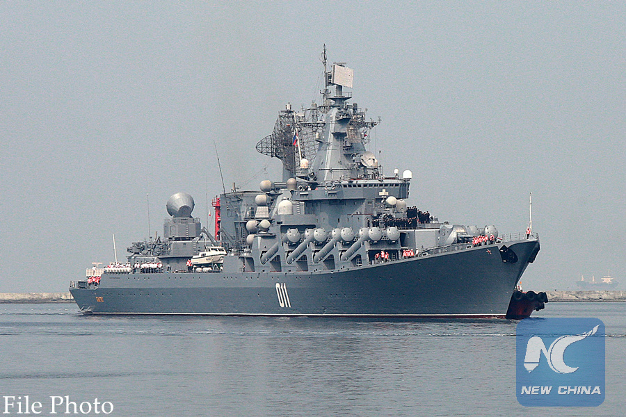 The Russian Pacific Fleet's flagship "Varyag" prepares to dock at Pier 15 in Manila, the Philippines, April 20, 2017. (Xinhua/Rouelle Umali)