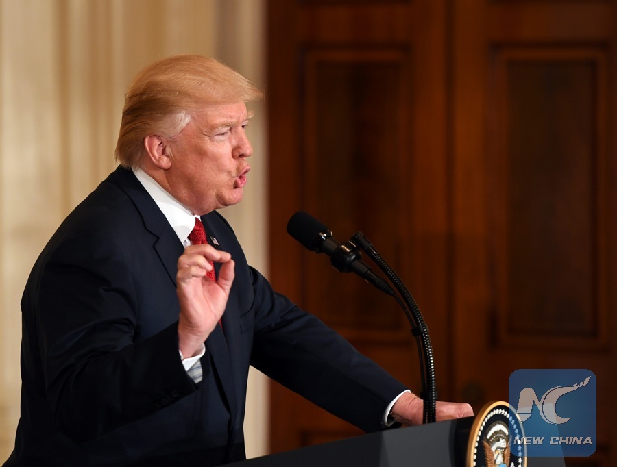 U.S. President Donald Trump attends a joint press conference with Italian Prime Minister Paolo Gentiloni (not in picture) at the White House in Washington D.C., the United States, on April 20, 2017. Despite his administration's certification of Iran's compliance with the 2015 nuclear deal, U.S. PresidentDonald Trumpon Thursday accused Iran of "not living up to the spirit" of the nuclear deal. (Xinhua/Yin Bogu)