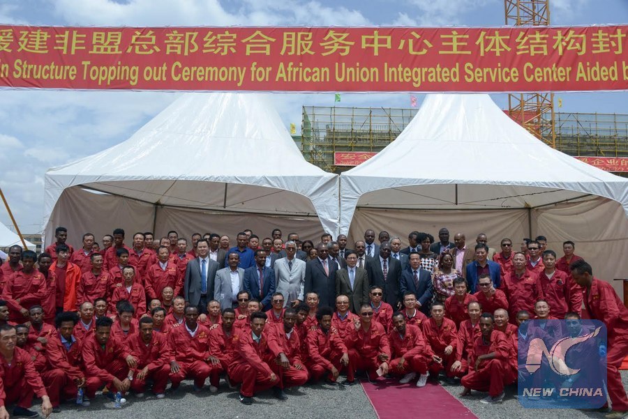 ADDIS ABABA, April 26 (Xinhua) -- The African Union (AU) on Tuesday held a topping out ceremony for its Chinese-built Integrated Service Center under construction on the premises of its headquarters in Ethiopia's capital Addis Ababa.