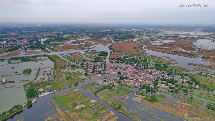 Aerial photo taken on April 25, 2017 shows the villages at Baiyangdian, one of the largest freshwater wetlands in north China, in Anxin County, north China's Hebei Province. China announced the plan for Xiongan New Area, an economic zone about 100 kilometers south of Beijing, on April 1, 2017. The new area will span Xiongxian, Rongcheng and Anxin counties in Hebei Province, eventually covering 2,000 square kilometers. Hebei announced recently it would call for international bids to plan and design Xiongan New Area. Global companies are welcomed to bid with their ideas for a 30-square-km area at initial stage. (Xinhua/Mou Yu)