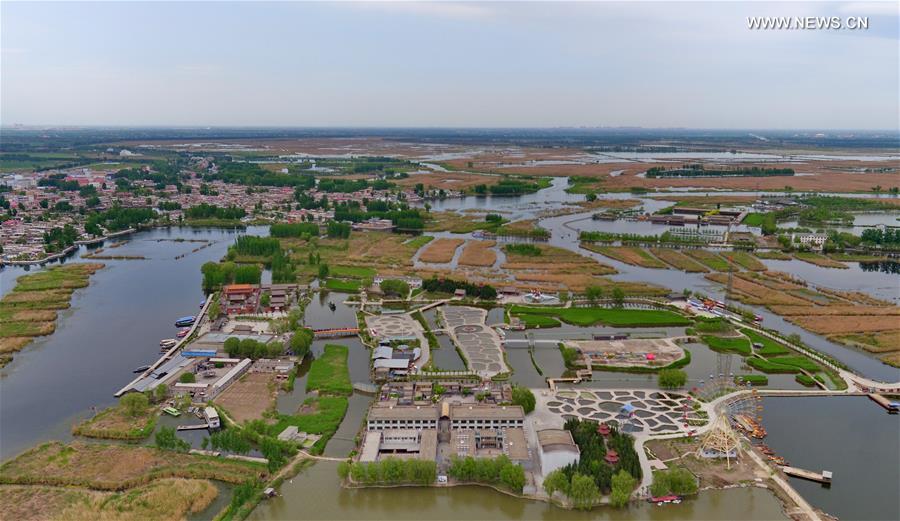 Aerial photo taken on April 25, 2017 shows the scenery of Baiyangdian, one of the largest freshwater wetlands in north China, in Anxin County, north China's Hebei Province. China announced the plan for Xiongan New Area, an economic zone about 100 kilometers south of Beijing, on April 1, 2017. The new area will span Xiongxian, Rongcheng and Anxin counties in Hebei Province, eventually covering 2,000 square kilometers. Hebei announced recently it would call for international bids to plan and design Xiongan New Area. Global companies are welcomed to bid with their ideas for a 30-square-km area at initial stage. (Xinhua/Mou Yu)