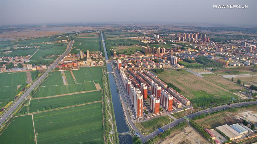 Photo taken on April 24, 2017 shows the scenery of the county seat of Anxin, north China's Hebei Province. China announced the plan for Xiongan New Area, an economic zone about 100 kilometers south of Beijing, on April 1, 2017. The new area will span Xiongxian, Rongcheng and Anxin counties in Hebei Province, eventually covering 2,000 square kilometers. Hebei announced recently it would call for international bids to plan and design Xiongan New Area. Global companies are welcomed to bid with their ideas for a 30-square-km area at initial stage. (Xinhua/Yang Shiyao)