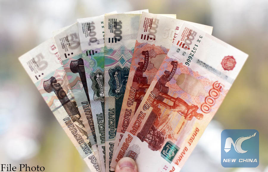 Russia's ruble banknotes are seen in the file photo taken on April 28, 2017. (Xinhua/Shi Hao)