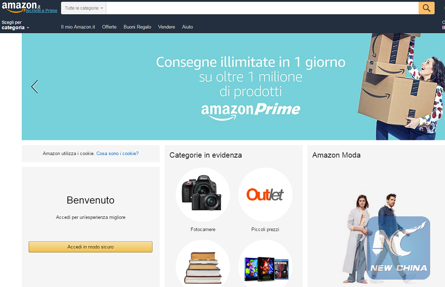 A screenshot captured on April 29, 2017 shows Amazon's Italian website.