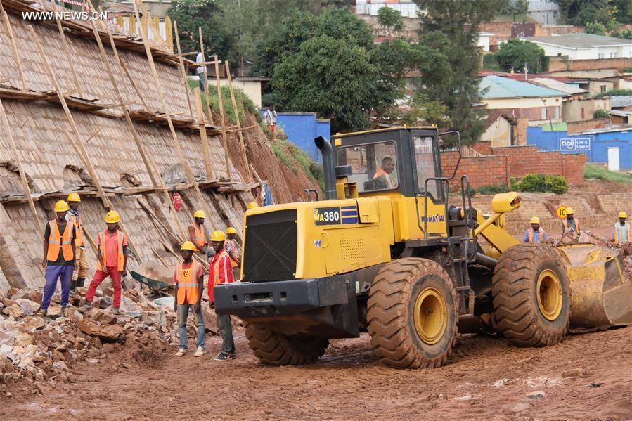 Photo taken on May 2, 2017 shows the construction site of an urban road upgrading project carried out by a Chinese company in Kigali, capital of Rwanda. China Road and Bridge Cooperation (CRBC) has started an urban road upgrading project in Kigali, which is expected to improve the overall traffic situation in Kigali and the landlocked country. (Xinhua/Lyu Tianran)